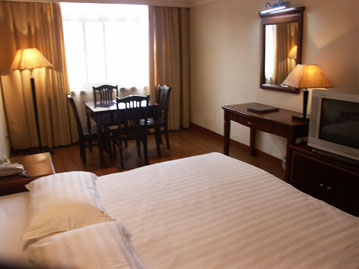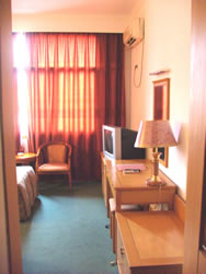酒店簡(jiǎn)介:賓館擁有豪華標(biāo)準(zhǔn)間間,普通標(biāo)間、彩電、空調(diào)、高檔地毯、電話(huà)、整體淋浴房等,二十四小時(shí)供應(yīng)熱水,餐廳、宴會(huì)廳能容納180人同時(shí)就餐,卡拉宋、美容美發(fā)、桑拿按摩、旅游車(chē)隊(duì)、商務(wù)部、票務(wù)中心等配套服務(wù)設(shè)施一應(yīng)俱全,是住宿、餐飲、旅游度假、休閑娛樂(lè)的理想場(chǎng)所。