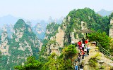 下 午: 中餐后游玩世界自然遺產(chǎn)的核心---袁家界景區(qū)(包含電影《阿凡達(dá)》中“哈利路亞山”原型“乾坤柱”、天下第一橋、九天玄梯、乾坤柱、連心橋、中韓友誼亭、神龜問天、迷魂臺等景點) 。袁家界,是張家界森林公園山頂觀景最為奇特壯觀景區(qū)之一,勝于黃石寨和天子山景區(qū)…之后便乘坐大約20分鐘的環(huán)保車可到大觀臺住宿地