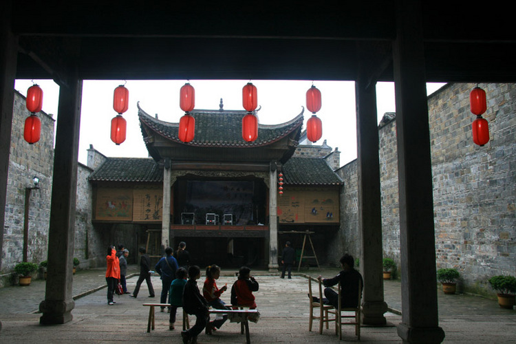 臨河戲臺幾乎天天都唱戲給烏舡子看。唱他們最愛看的湘劇,并且都是折子戲而非整場戲,因為整場戲常常要唱十天半月,烏舡子沒看得完就要返航。折子戲短,最切合烏舡子的??繒r日。唱的多半是“三國戲”:《空城計》、《定軍山》、《走麥城》、《三氣周瑜》,還有《黃鶴樓》、《摘梅桃》……數(shù)也數(shù)不完。戲班子都是由八元堂寧鄉(xiāng)會館從各地邀請來的,免費公演。招呼戲班子的費用由會館埋單,免不了要請到怡華樓、月華樓、奇珍閣等有名的飯館去吃“八大碗”,唱完戲還有夜宵招待,吃靖港的特色小吃。戲班子當然就更賣力。烏舡子上的船老大不但愛看戲,還蠻會享受,他們把船搖得正正地對準臨河戲臺,和小老婆肩并肩雙雙坐船頭,一邊津津有味地看戲一邊津津有味地喝著靖港谷酒,吃著從靖港街上買來的香干子和鹵菜,搖頭晃腦,張嘴咋舌,樂不思蜀。也有許多古鎮(zhèn)居民來看免費戲,他們常常爬到烏舡子上,與船老板和和老板娘一起看戲,船老板熱情大方,會讓出座位來,邊看戲邊和本地居民扯談,對古鎮(zhèn)也就更加熟悉了解。