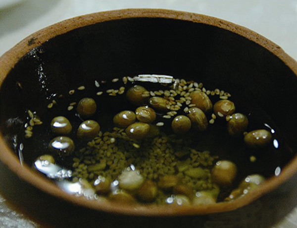 靖港人吃姜鹽芝麻豆子茶早已成為當?shù)氐娘L(fēng)俗習(xí)慣。將生姜搗碎,加入少量食鹽和炒熟的芝麻、黃豆或黑豆,一齊倒入茶罐中,然后手提茶罐搖勻倒入茶杯待客,香脆可口,味不亞于“湘西擂茶”。