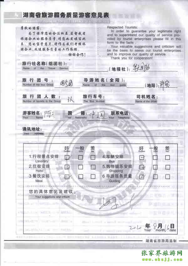 2010年8月16日陳小姐一行3位旅游質(zhì)量反饋:一個(gè)“好”字,對我們的工作給予了充分肯定