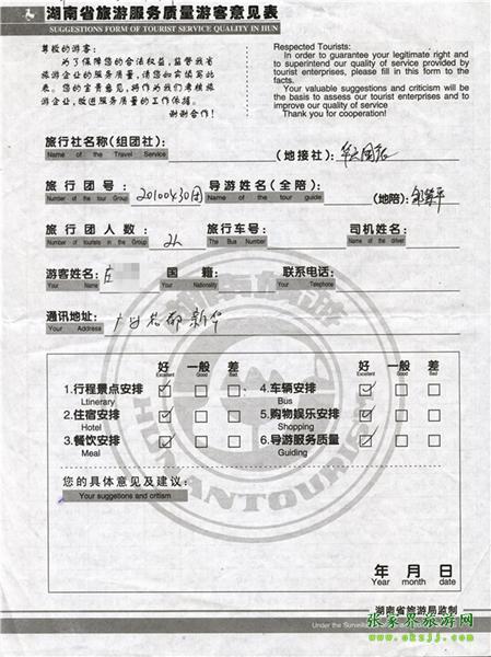- 2011年10月26日張小姐一行18人旅游質(zhì)量反饋 [10482]