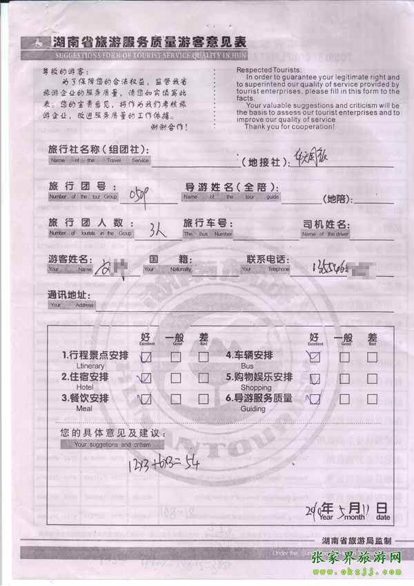 2010年5月11日文小姐一行3位旅游質(zhì)量反饋