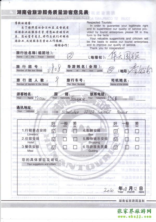 2010年8月12日法國Moreav一行9位旅游質量反饋