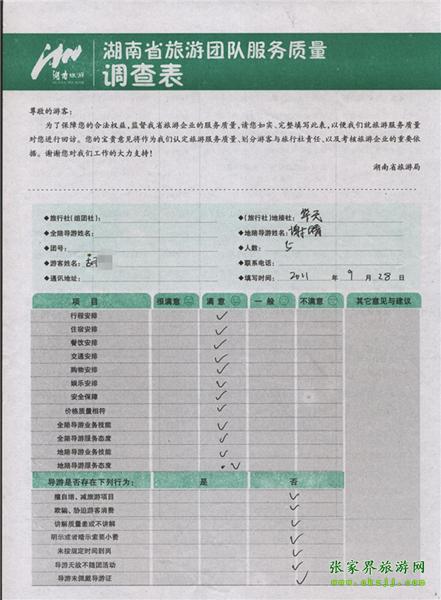 2011年9月28日胡小姐一行5人旅游質(zhì)量反饋