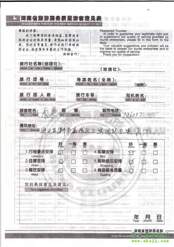 - 2011年10月26日張小姐一行18人旅游質量反饋 [10482]