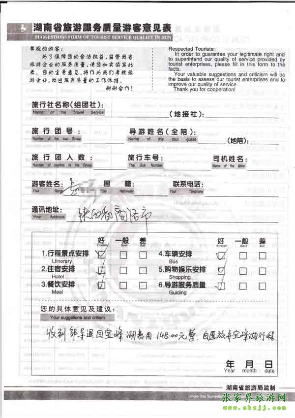 - 2011年10月26日張小姐一行18人旅游質(zhì)量反饋 [10482]
