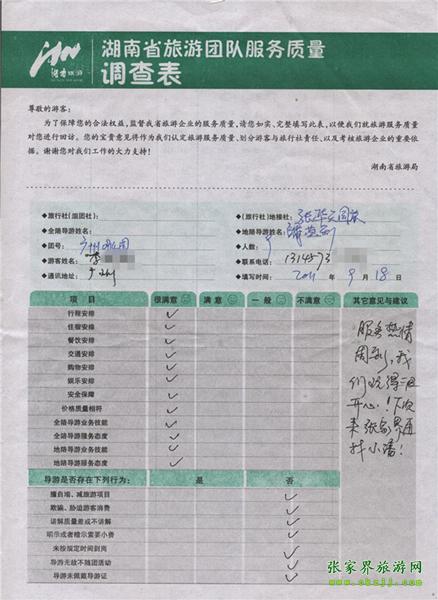 2011年9月18日李小姐一行9人旅游質量反饋:服務熱情周到,我們玩得很開心!
