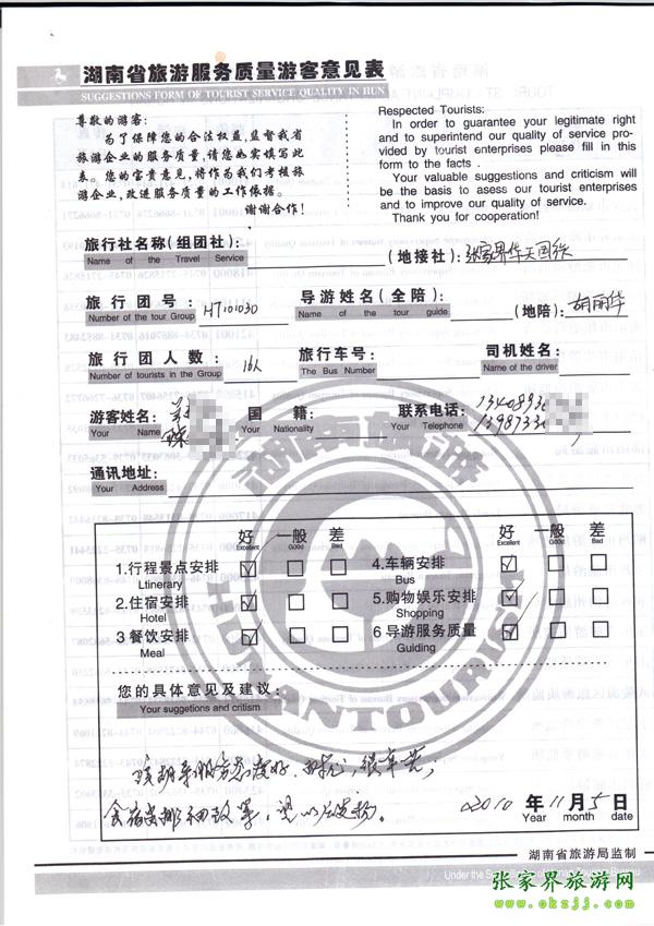 - 2011年10月26日張小姐一行18人旅游質(zhì)量反饋 [10482]