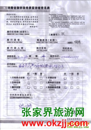 2010年5月10福建吳先生旅游質(zhì)量反饋