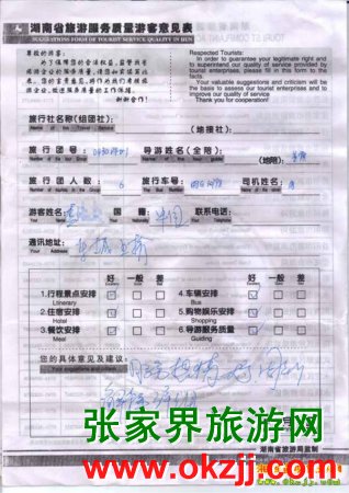 2010年5月2號深圳李先生一行6位旅游質(zhì)量反饋