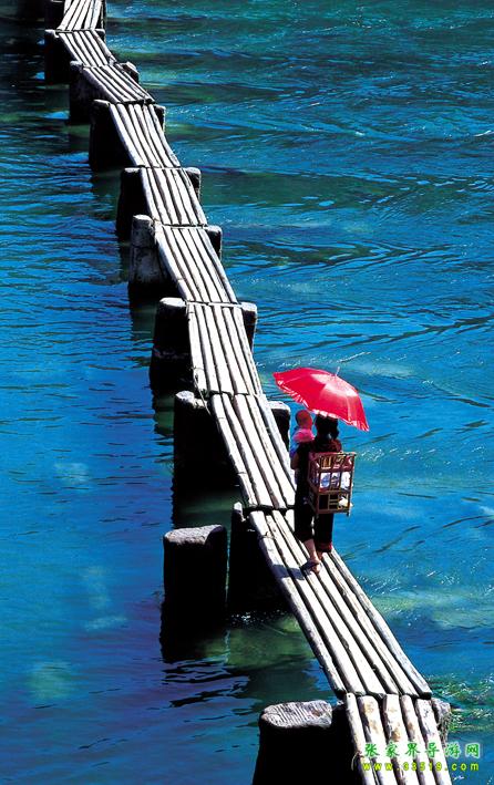 還有那鳳凰人在江邊用木板洗衣服時的情形也是難忘的。小住幾天,都會發(fā)現(xiàn)從一早到一晚都有當?shù)氐木用裨阢吷舷匆路?,他們?nèi)巳硕寄靡豢焯刂颇景?,用來敲打衣服,特別在早上八、九點的時候,江兩岸的邊上、木橋的兩邊橋墩下,都蹲滿許多的人,當然婦女、老人居多,在那“啪啪”的洗衣服,此起彼伏,甚有節(jié)奏。時而有游人用照相機對其拍照,可他們似乎也習(xí)以為常了,毫不理會,特別在傍晚還會有脫得精光的小孩在岸邊的洗衣人周圍玩水,奇怪的是,他們并不害羞,也不害怕游人的鏡頭和目光,我想大城市里的孩子就少了這份的無機心的單純了。在這里生活無疑自然舒適淳樸的,我想他們的生活習(xí)慣從來就是如此的,沒有因我們游客的到來而有太大該變。