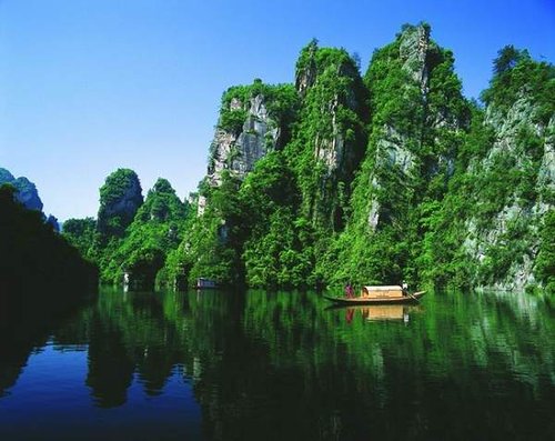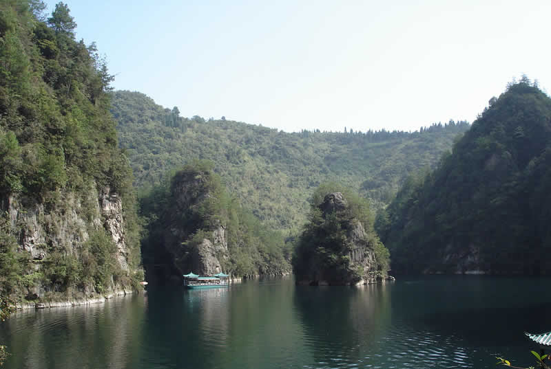 其位于武陵源區(qū)城南1.5公里處,是武陵源風景名勝中的精品景點。它是一座罕見的高峽平湖,四面青山,一泓碧水,風光旖旎,是山水風景杰作。在此蕩舟,還可見到湖心島上“玉瓶開花”、“十女梳妝”、“金龜戲水”、“青蛙鬧春”等佳景。 寶峰湖是一個截流筑壩而成 的人工湖,深72米,長2.5米公里, 以其秀麗的湖光 水色與幽野的洞天情趣成為武陵源水景風光的代表之 作。湖中有兩座疊翠小島,近岸奇峰屹立,峰回水轉。