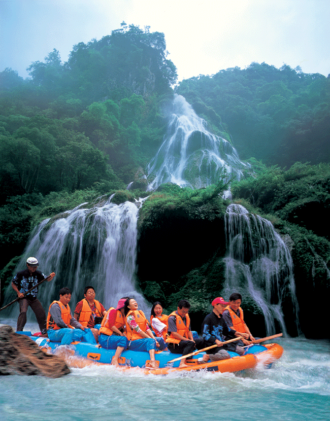 到了大門口,彭導(dǎo)幫我們?nèi)ベI了門票,248元/人,共花去496元。彭導(dǎo)先前給我們預(yù)算是,按最經(jīng)濟的帳目來算的,470元/人(包括進山大門票,但不包括索道、天梯、酒水等),他說出門在外,能節(jié)約點就節(jié)約點。當(dāng)然他也知道我們可能會超出這個標準,如果有必要,到時可以再自己花費。買了門票后,我給了他500塊,算是這幾天的費用,他說,不是說好是每人470的嗎,你應(yīng)該是給我444塊。我說,上次謝謝您的關(guān)心,這次不能讓你太吃虧了。彭導(dǎo)說,那今天晚上我叫店家給你們加個菜,呵呵呵。 下午,我們玩了森林公園中的黃石寨和金鞭溪??戳颂鞎鴮毾?、點將臺、南天柱、摘星臺、六奇閣,五指峰、金鞭溪、金鞭巖、文星巖、紫草潭、千里相會等,彭導(dǎo)果然是彭導(dǎo),有著二十年的導(dǎo)游經(jīng)驗的他就是不同凡響啊,個個景點都是如數(shù)家珍,說得是頭頭是道。(據(jù)網(wǎng)上說,有些導(dǎo)游是只帶路不講解,讓人只是看看表面,而無法去領(lǐng)略張家界那些精美絕倫的凄美傳說。我個人認為張家界的傳說也是應(yīng)該值得每一個游人去了解,去領(lǐng)略的,如果你來張家界沒有聽到這些傳說的話,那一是你的導(dǎo)游的水平問題,二是你的一個很大的遺憾,你來張家界的經(jīng)歷是不完美的),什么龍蝦花的來歷,金鞭巖的前身,秦始皇和孟姜女與張家界的關(guān)系。晚上乘百龍電梯上袁家界(張家界的核心)一家旅館住宿。晚餐時,一葷一素一湯。我們吃著吃著,老板笑咪咪的搬上一鍋火鍋,當(dāng)?shù)氐耐岭u火鍋。我們很詫異,我說,我們沒有點這個菜?。±习?,你是不是弄錯了?老板說,這是你們彭導(dǎo)叫我特地做的。我突然明白了,一定是彭導(dǎo)是為我多給的那50多塊錢了。由于長途奔波,加上下午又走了很多路,晚上洗了一個澡就睡下了。山里的氣溫很低,在這全國都如火爐時,張家界的晚上卻要蓋很厚的被子,真是一塊寶地啊。 第二天早上,我們參觀了袁家界的風(fēng)景,其中最有名的當(dāng)然數(shù)天下第一橋,這是由兩座巖石山的山頂自然生長在一起,非人所能為也。天下第一橋的稱號當(dāng)之無愧啊。當(dāng)然在袁家界,后花園也是不能不看的。張家界號稱“峰三千,水八百”,在這里你就能明顯的感覺到這句話的前半句是那么的實在??赐陱埣医绲暮诵脑医纾覀兂塑嚨搅?a class="insidelink" href="http://www.powuer.com/scenic/zjjjq/1529295057.html" title="天子山">天子山(張家界景區(qū)內(nèi)的最高的地方)。玩了賀龍公園、御筆峰、仙女散花、西海、石船出海、仙人橋、天子廟、十里畫廊、一步難行。不巧的是,那天山上下了一點陣雨,雨后一條彩虹掛在天上,更重要的是山上起了一點霧,使整座山都籠罩在霧中,若隱若現(xiàn),看上去就象是在云海中,好象老天特地配合我們似的,難得一見的西海等正好被我們趕上了。彭導(dǎo)告訴我們,這樣的機會是很難得的,可能是張家界為了感謝我的再次到來,給了我一個特別的禮物吧。我大笑。晚上趕到昨天住的地方去住宿。不提。 第三天我們玩了烏龍寨、三道鬼門關(guān)、天波府、一步登天、空中走廊等。主要是在楊家界的景區(qū)范圍內(nèi)。本來是第三天下午要去鳳凰的,但是考慮到我和女友小嵐好容易來張家界一次,盡量將張家界的能玩的地方去玩一下。我也曾聽說張家界不僅峰三千,水八百,同時天然溶洞也是非常不錯的,據(jù)說其中一個溶洞為一根鐘乳石投保了1個還是2個億,(不怎么記得了,呵呵。)而且在張家界的宣傳資料上還看到了有漂流,打水仗等非常刺激的項目。我于是問一下彭導(dǎo),能否幫我們聯(lián)系一下,彭導(dǎo)很爽快的答應(yīng)了,他幫我們聯(lián)系了九天洞和茅巖河的公司。在彭導(dǎo)的上下打通下,本來是315元/人的行價,硬是給用278元/人的價格給拿下了。當(dāng)搞定這些時,已經(jīng)外面是天黑一片了(彭導(dǎo)家就在楊家界)彭導(dǎo)說他想回家看看,明天我們會和一群人去看洞和漂流,他就不陪我們?nèi)チ?,明天下午他會在張家界市區(qū)去接我們,到時會有車送我們?nèi)ナ袃?nèi)。然后他會送我們上去鳳凰有車,并幫我們?nèi)ヂ?lián)系鳳凰的朋友來招待我們。 第四天,清晨我們便踏上了汽車去看洞漂流。號稱亞洲第一大洞的九天洞果然是名不虛傳,我們把它現(xiàn)在開發(fā)的部分粗略的走了一下,就花了我們近月4個小時,洞中鐘乳石遍地,在五彩斑闌的燈光下,顯得晶瑩剔透,閃閃發(fā)光,讓人感覺到是到了水晶宮一般,地下還有陰河,遠處通知海(據(jù)說)。對了,洞中溫度很低,常年在10多度。讓人在其中感覺到一陣陣寒意。故想進去的朋友記得多穿點衣服,以免著涼,切記。我們當(dāng)時就是吃了很大的虧,從洞中出來時,小嵐就在點喀漱。下午來到茅巖河漂流。上船前看到有人賣水瓢,心中不免奇怪。雖說,張家界金鞭溪的水可以喝,但也不是每一條河的水都能喝???于是上前去問,一打聽才知道,這瓢不是用來舀水喝的,而是用來打水仗的。本來因為小嵐有點小感冒,我們打算保持中立,但一看到各位船友們個個磨拳擦掌,人手一把瓢或者水槍(這是當(dāng)?shù)厝擞弥褡幼龅囊环N土水槍),還且對我們是虎視眈眈,我想我參加是不成了。于是我們也花了幾塊錢買了兩把。船開動后,大家開始時還是比較興奮,不時用瓢來劃一下船,但是沒多久,大家