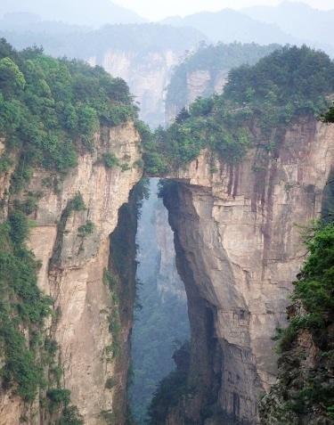 天下第一橋:屬武陵源精華景點(diǎn)。大自然的鬼斧神工,將一塊厚約5米的天然石板,橫空架在兩座山峰之上,把東西兩峰連接。高度、跨度和驚險(xiǎn)均為天下罕見(jiàn),故稱“天下第一橋”。